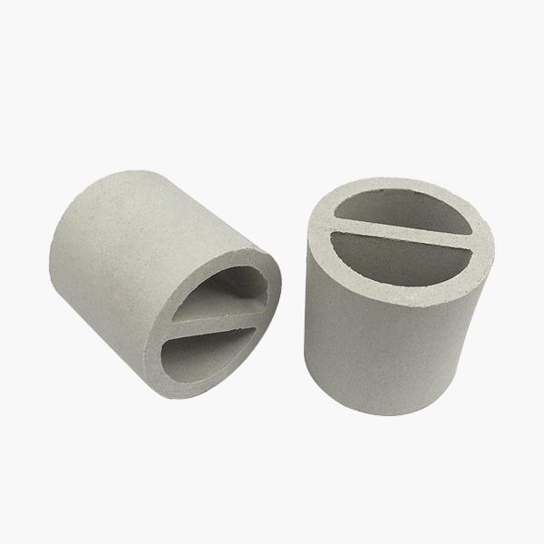 陶瓷一字環(huán)又被稱之為陶瓷勒辛環(huán)。它是在拉西環(huán)原有基礎(chǔ)上基于增加填料的比表 面積和強化傳質(zhì)效率的想法之上在其中間加入像漢字一的一般的隔板而設(shè)計出來的。形象化地稱它為一字環(huán)。陶瓷一字環(huán)是由陶瓷拉西環(huán)改良形成,比陶瓷拉西環(huán)有更大比表面積和更好的抗壓強度,擁有優(yōu)異的耐酸和耐熱性,能夠并且能耐除氫氟酸以外的各種無機(jī)酸、有機(jī)酸及有機(jī)溶劑的腐蝕,并能夠在高溫或者低溫的環(huán)境下使用,因此其使用范圍非常廣泛。