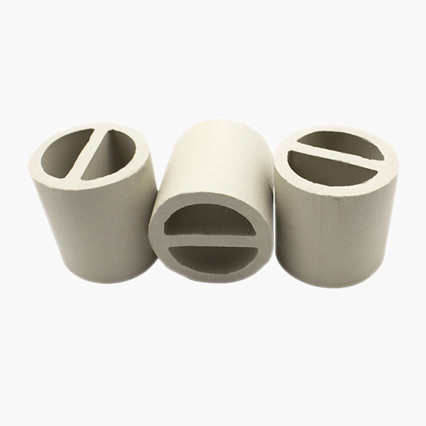 陶瓷一字環(huán)又被稱之為陶瓷勒辛環(huán)。它是在拉西環(huán)原有基礎(chǔ)上基于增加填料的比表 面積和強(qiáng)化傳質(zhì)效率的想法之上在其中間加入像漢字一的一般的隔板而設(shè)計(jì)出來的。形象化地稱它為一字環(huán)。陶瓷一字環(huán)是由陶瓷拉西環(huán)改良形成,比陶瓷拉西環(huán)有更大比表面積和更好的抗壓強(qiáng)度,擁有優(yōu)異的耐酸和耐熱性,能夠并且能耐除氫氟酸以外的各種無機(jī)酸、有機(jī)酸及有機(jī)溶劑的腐蝕,并能夠在高溫或者低溫的環(huán)境下使用,因此其使用范圍非常廣泛。